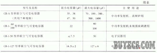 空氣介質(zhì)可變電容器又有單聯(lián)和雙聯(lián)之分,表4-169 和表4-170 分別列出了一些單聯(lián)空氣可變電容器和雙聯(lián)空氣可變電容器的主要性能及用途。