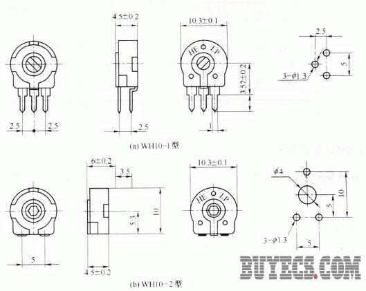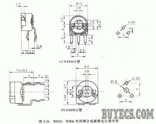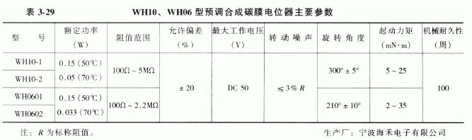 1 , WH10 、WH06 型預調合成碳膜電位器WH10 、WH06 型預調合成碳膜電位器的外形如圖3-34 所示,它們的主要參數(shù)見表3-29 。