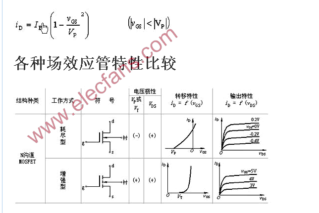 各種場(chǎng)效應(yīng)管特性比較
