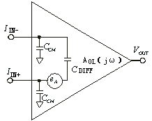 輸入差分電容CDIFF和輸入共模電容CCM是直接影響電路穩(wěn)定性和噪聲性能的寄生電容。這些寄生電容在數(shù)據(jù)手冊(cè)中通常規(guī)定為典型值,基本不隨時(shí)間和溫度變化。