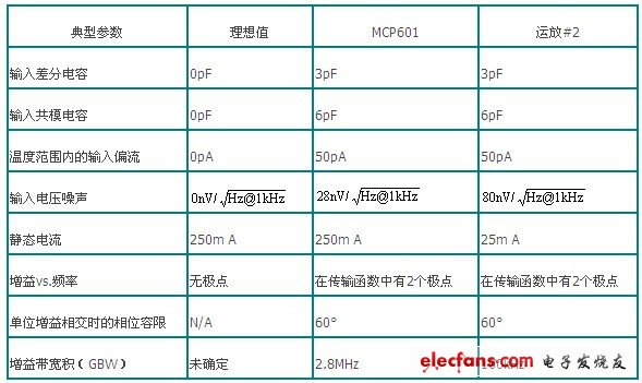 在這個(gè)應(yīng)用電路中,對(duì)運(yùn)放有影響而未模擬的另一個(gè)重要性能參數(shù)是輸入共模范圍和輸出擺幅范圍。一般而言,輸入共模范圍必須擴(kuò)展到超過負(fù)電源幅值,而輸出擺幅必須盡可能地?cái)[動(dòng)到負(fù)電源幅值。大多數(shù)單電源CMOS放大器具有負(fù)電源電壓以下0.3V的共模范圍。由于同相輸入端接地,此類性能非常適合于本應(yīng)用領(lǐng)域。當(dāng)放大器對(duì)地的負(fù)載電阻為小于RF /10時(shí),則單電源放大器的輸出擺幅可最優(yōu)化。如果采用這種方法,最壞情況下放大器負(fù)載電阻的噪聲也僅為總噪聲的0.5%。
