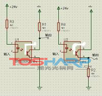 問題:這兩個電路有什么不一樣嗎?出來輸出與輸入的相位之外,一個是集極輸出,一個是發(fā)射極輸出?電阻值是我隨便選的。 我有PLC輸出的24V電平,我要轉換成5V的電平。