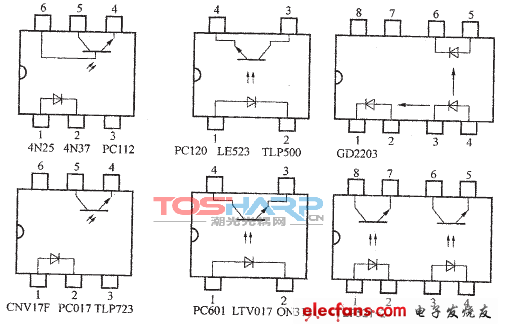 光電耦合器的封裝形式,只有雙列直插式,常用類型的光電耦合器的引腳排列