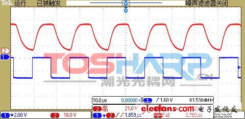 測(cè)試中發(fā)現(xiàn)TLP127的關(guān)閉時(shí)間很長(zhǎng),該光耦為達(dá)林頓管輸出,其原因可能是由于達(dá)林頓管的輸出電流能力較強(qiáng),最大可達(dá)150mA,而我們測(cè)試電路的負(fù)載較小,輸出端瀉電流較慢,導(dǎo)致電平保持時(shí)間、關(guān)斷時(shí)間等都很長(zhǎng)。在4K波形中可以看到,電流尚未來得及完全釋放下一個(gè)上升沿即已經(jīng)開始,此時(shí)的信號(hào)輸出已經(jīng)無法正常使用。芯片手冊(cè)上給出的參數(shù)亦是如此,在典型電路的測(cè)試中(詳情請(qǐng)參閱廠家的數(shù)據(jù)手冊(cè))關(guān)斷時(shí)間達(dá)到80us,因此在使用該類型光耦是要注意。HCPL0601為高速集成電路輸出光耦,因此可使用頻率相當(dāng)高,測(cè)試中甚至可達(dá)到20MHz的極限頻率。