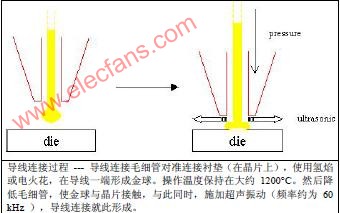 掃描電子顯微鏡(SEM)來觀察,如圖9(注:原文中沒有此圖)所示,其中的小草圖示出無劃痕層的形狀。從這一間接現(xiàn)象,我們可以認(rèn)為這一層的硬度要高于金導(dǎo)線上部的硬度*。如果我們更仔細(xì)地研究導(dǎo)線連接過程,我們又獲得一個(gè)證據(jù)來證明無劃痕區(qū)域是由于超聲能和壓力造成的加工硬化作用。