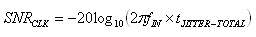 方程式 1 讓您能夠計算出特定 ADC 的要求時鐘抖動估計值。例如,一個 70 dB SNR 的 ADC,輸入信號為 100 MHz,您可以計算得到 tJITTER_TOTAL 的值為 503 微微秒。如果輸入 ADC 孔徑抖動為 150 微微秒,則由方程式 2 可得到一個較高的外部時鐘抖動要求估計值。