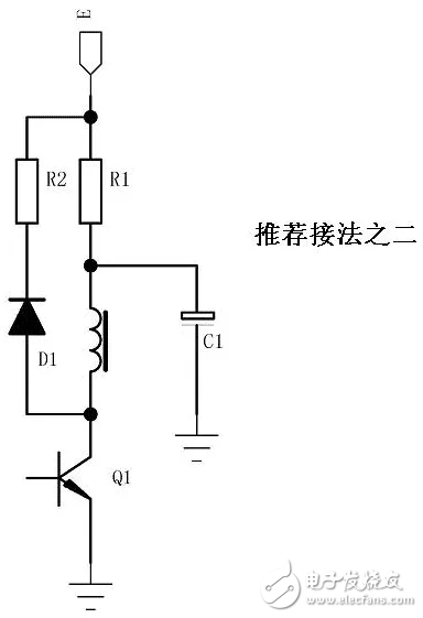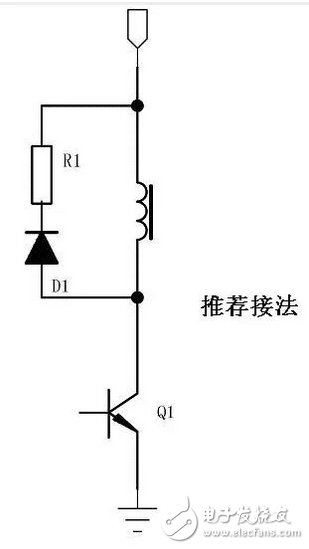 曾見(jiàn)過(guò)象下圖中電路,也曾見(jiàn)過(guò)象下圖中沒(méi)有二極管的接法,這些接法都考慮到了抑制開(kāi)關(guān)Q1截止時(shí)的反向電壓,但沒(méi)有考慮到釋放時(shí)間問(wèn)題。