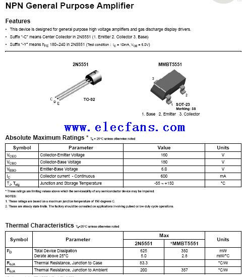 2n5551參數(shù)封裝以及管腳定義