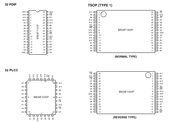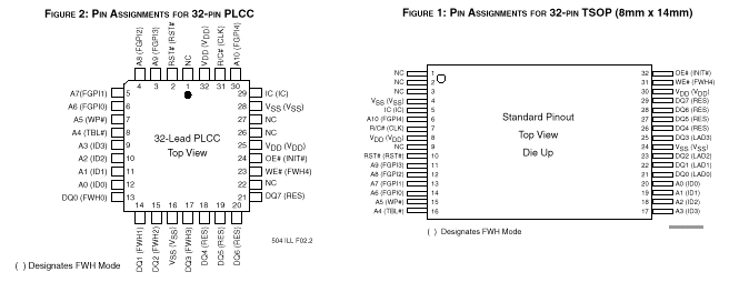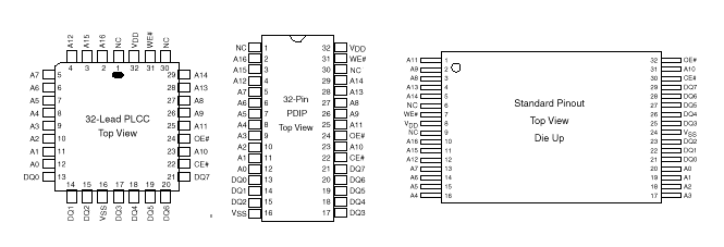 BIOS芯片管腳引腳定義圖:芯片的封裝形式有DIP、PLCC、TSOP,SSOP,SO等。但請注意,只是封裝不同而已,對于同一種型號的芯片,不論是什么封裝形式,其管腳的功能都是一一對應(yīng)的。