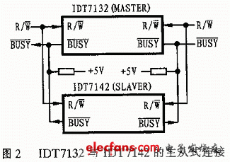 目前市場上有多種專用雙端口RAM芯片,如IDT7132/7142、DS1609等。這些芯片有兩套完全獨立的數(shù)據(jù)線、地址線和讀寫控制線,因而可使兩個CPU分時獨立訪問其內(nèi)部RAM資源。由于雙CPU同時訪問時的仲裁邏輯電路全部集成在雙端口RAM內(nèi)部,因而需要用戶設(shè)計的電路比較簡單。雙端口RAM內(nèi)一般都有一個總線搶占優(yōu)先級比較器,只要雙CPU不同時訪問同一存儲單元,那么較先送出地址的CPU將擁有該單元的本次訪問優(yōu)先權(quán),而另一個CPU的地址與讀寫信號將被屏蔽掉,同時通過“busy”引腳告知該CPU以使之根據(jù)需要對該單元重新訪問或撤消訪問。