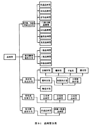 圖8-1是晶閘管的分類圖,圖8-2是晶閘管的外形,圖8-3是晶閘管的電路圖形符號。