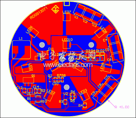 PCB設(shè)計(jì)中,所有器件都放置在電路板頂層,底層保留用作地。實(shí)際應(yīng)用中,電路安裝在鋁結(jié)構(gòu)上,能夠提供較好的接地和散熱性能。頂層設(shè)計(jì)采用較大的覆銅面積,以改善與鋁結(jié)構(gòu)之間的導(dǎo)熱能力。