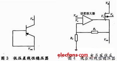 最早成套出現(xiàn)的線性穩(wěn)壓驅(qū)動(dòng)器出現(xiàn)于20世紀(jì)70年代,那時(shí)是以NPN管作為穩(wěn)壓器件的,如圖1所示。這種穩(wěn)壓器件在輸入電壓與輸出電壓之間要求2Vbe的電壓,當(dāng)輸入電壓低于2Vbe時(shí),NPN管進(jìn)入飽和,穩(wěn)壓器將失去穩(wěn)壓能力。為了減少壓差,出現(xiàn)了組合型的穩(wěn)壓器,如圖2所示,即用PNP管驅(qū)動(dòng)NPN管的基極,但壓差也接近1Vbe。20世紀(jì)80年代中期,市場(chǎng)上出現(xiàn)了低壓差線性穩(wěn)壓器,如圖3所示。與NPN穩(wěn)壓器不同,PNP穩(wěn)壓器壓差不是Vbe的函數(shù),而是PNP管Vce的函數(shù),這個(gè)電壓值要低得多,隨著制造工藝的成熟,PNP穩(wěn)壓器壓差已經(jīng)小于500 mV。