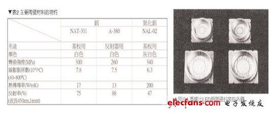 陶瓷材料幾乎網(wǎng)羅上述所有要求特性,非常適合當(dāng)作LED的封裝。表2是主要陶瓷材料的物性,如表2所示陶瓷材料的耐光劣化性,與耐熱性比傳統(tǒng)環(huán)氧樹(shù)脂更優(yōu)秀。