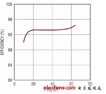 LT3956的轉(zhuǎn)換效率可以達到約94%(取決于輸入電壓和工作頻率)。這一點示于圖2中給出的效率曲線。