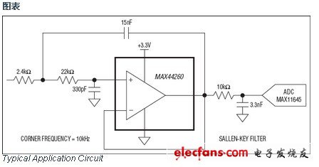 MAX44260/MAX44261具有高速、高精度、低噪聲、低電壓特性,可理想用于便攜設備和工業(yè)設備中的大多數(shù)信號處理功能,如:信號濾波和放大。