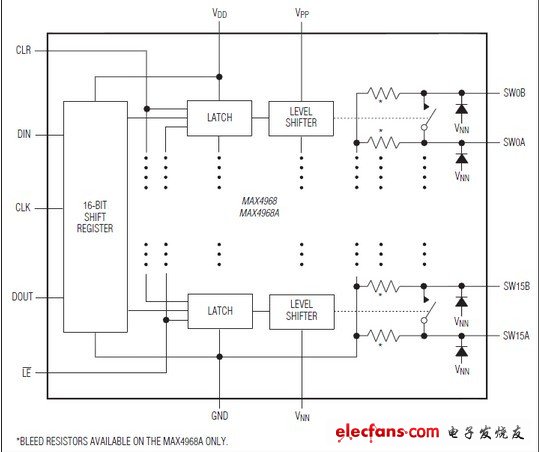 分流(出血)電阻輸出(MAX4968A只有)